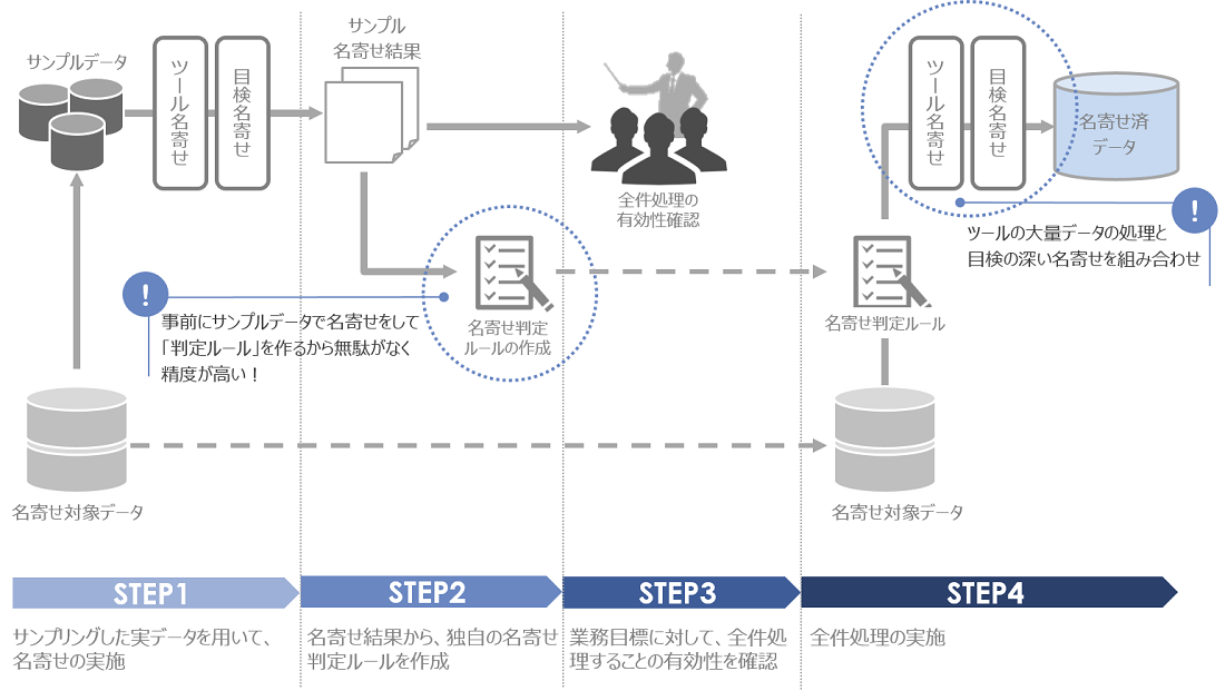 3.ツール名寄せと、人間の目で見る目検名寄せで、精度を高品質にする